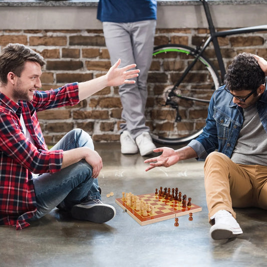 Folding Board Game Set Portable Travel Wooden Chess Set with Wooden Crafted Pieces Chessmen Storage Box